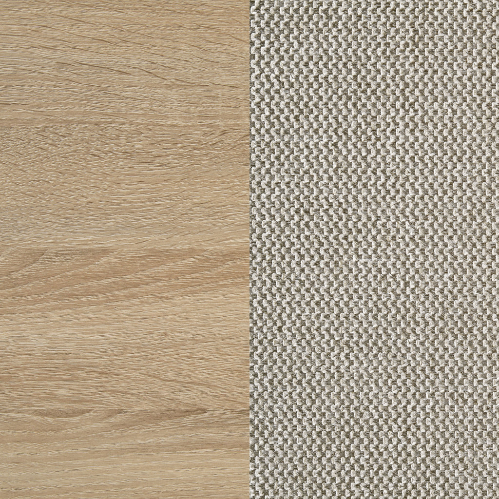 A striking balance of softness and ingenuity, this storage bed is a true centerpiece. A plush, vertical channel-tufted headboard is embraced by light oak bookcase panels, each with three open shelves that glide outward on hidden casters. Wrapped in textured fabric and built with engineered wood and a durable laminate veneer, the supportive platform base offers comfort and stability with a touch of modern grace. Key Features: • Queen bed with vertical tufted headboard and oak-framed sliding bookcase panels • Three-tier open shelving on each side offers practical and adjustable storage • Panels glide outward on hidden casters for flexible bedside access and function • Upholstered platform frame in soft light tan fabric supports a clean modern look • Engineered wood frame finished in scratch-resistant, durable laminate veneer • Combines plush texture with built-in storage for seamless everyday bedroom use
