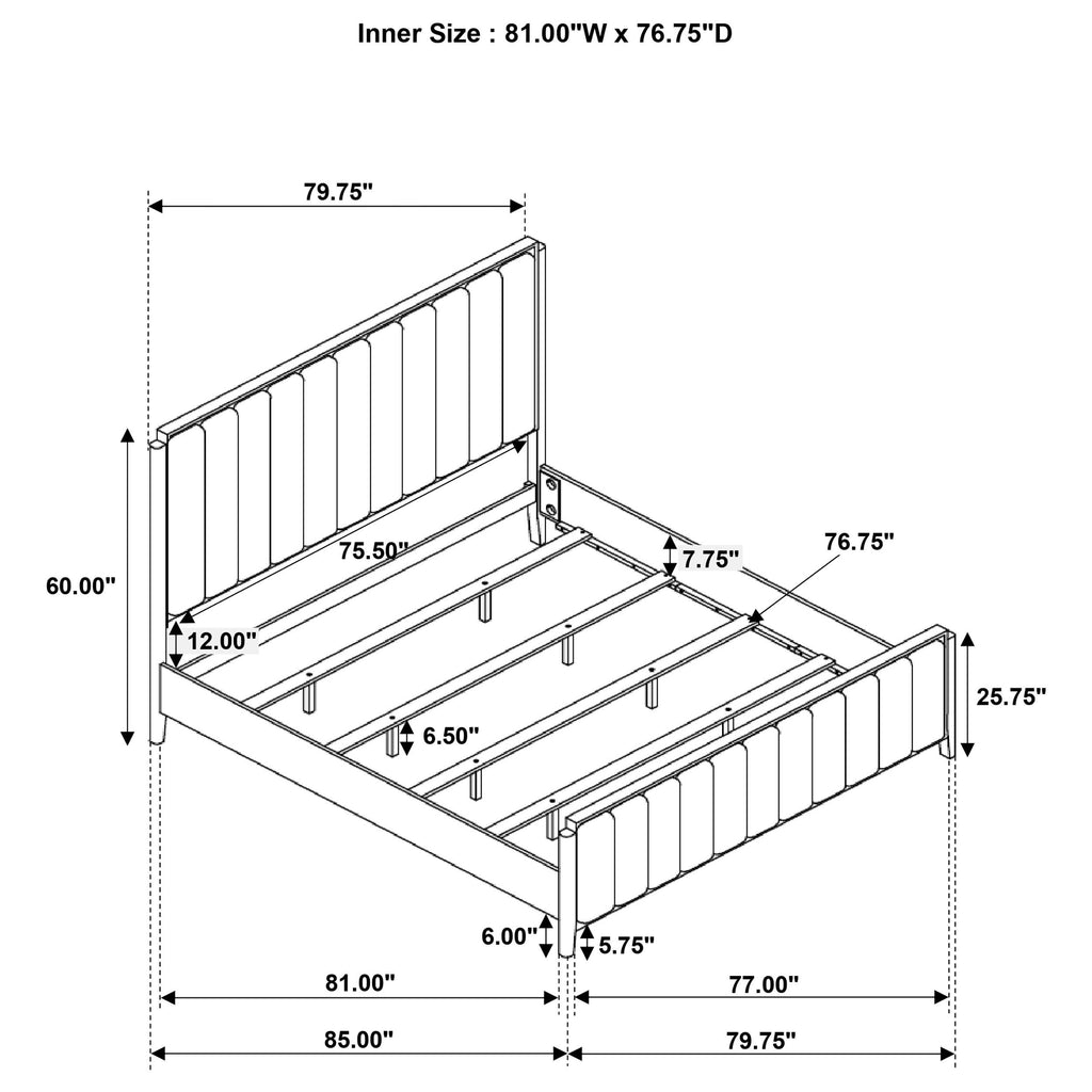 Instill a hint of drama in your bedroom with the rich black finish of a modern wooden bed. Designed to stand out, it features a timeless silhouette with a tall headboard and low footboard to create an open, airy look in your bedroom. The black finish is bold and deep, with wire brushing that creates a touch of texture to highlight fluted texturing that create wonderful dimensionality. The bed includes matching black rails for a tailored, cohesive look and feel. Slats and support legs are included, offering peace of mind for a stable night's sleep. Key Features: • Stylish and modern, a contemporary wood bed features a wire brushed black finish • Square headboard and footboard create a complementary pairing and open silhouette • Fluted texturing highlights the head and footboards for subtle embellishment to surrounding decor • Bed includes tapering, round feet that provide structure and support • Includes slats with support legs to provide an excellent base for your mattress set