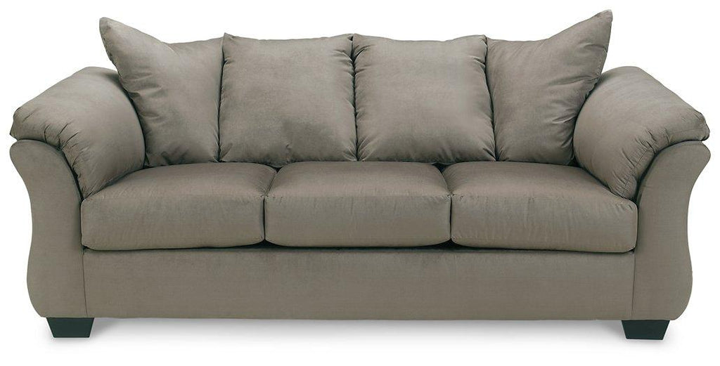 Talk about fine lines and great curves. That’s the beauty of this standout sofa—made to suit your appreciation for clean, contemporary style. A striking flared frame, comfy pillow top armrests and an ultra-soft upholstery that holds up to everyday living complete this fashion statement..