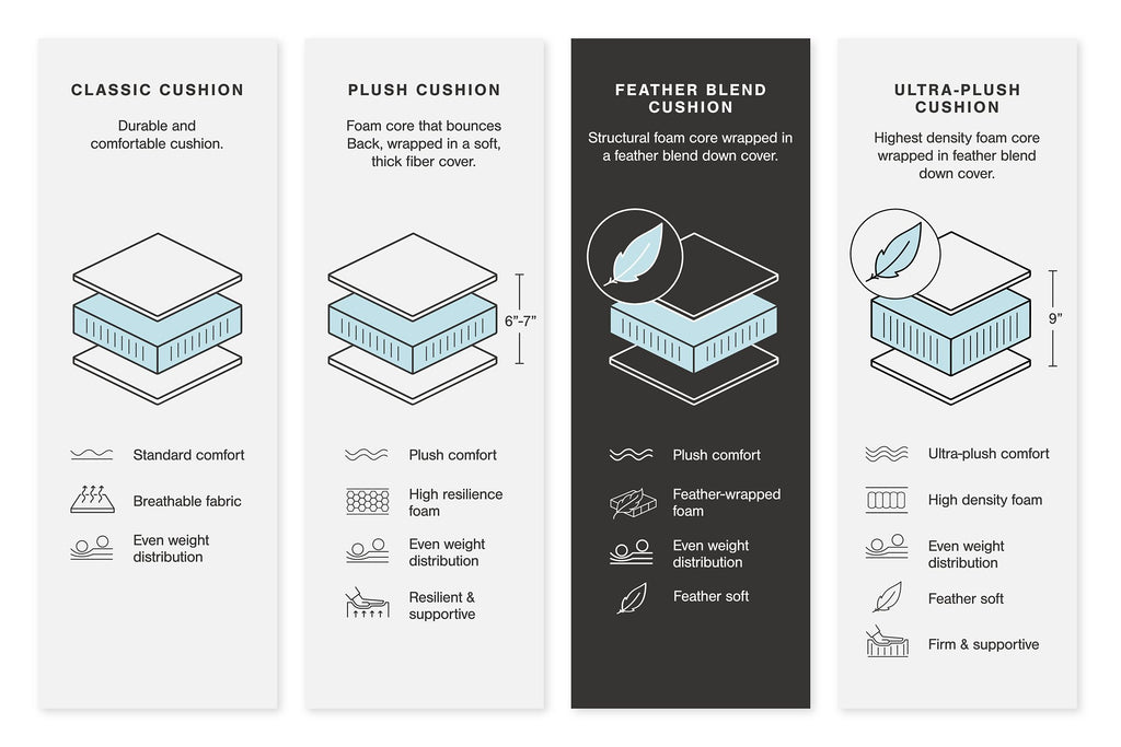 • Feather-fiber blend cushion