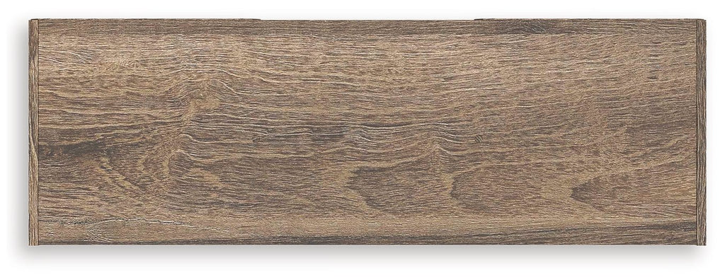 • Weathered brown finish over replicated oak grain with authentic touch
