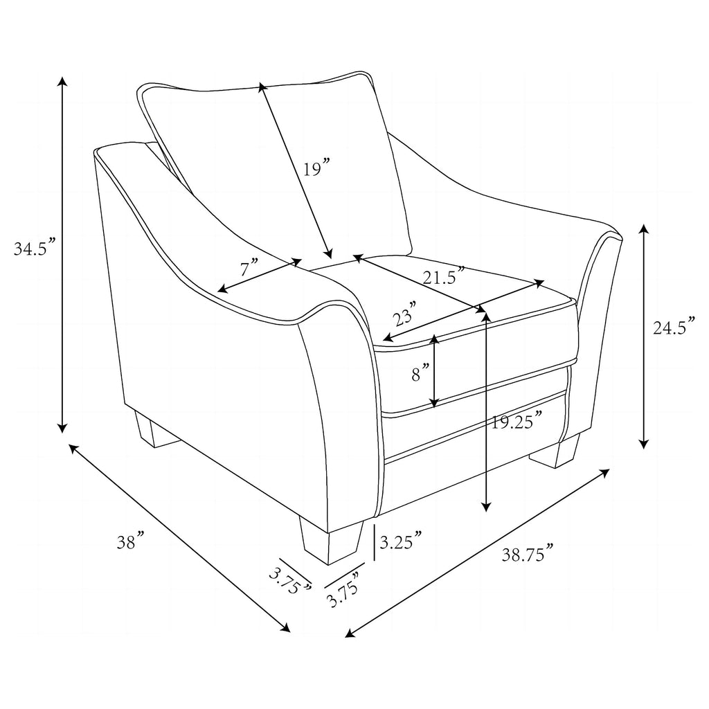 Geometric accent pillows add the perfect pop of pizzazz to a two-piece modern sofa set. Ideal for a stylish but approachable living room, the set features clean lines with sloping arms that add a hint of movement. Light gray upholstery complements in a contemporary space, while plush foam cushions are complemented with sinuous springs and pocket coils for exceptional support. The sofa and loveseat feature piped trim, adding to their tailored appeal. Tapered block feet in a black finish complete the look and offer stability and durability. Key Features: • Light gray upholstery complements clean, sleek silhouetting in a modern two-piece sofa set • Wide, sloping arms feature piped trim that adds a tailored touch for a refined look and feel • Fully encased solid and engineered wood frame provides lasting durability and reliability • Features attached cushions with bold accent pillows included for added comfort and flexibility • Seats feature pocket coils and sinuous springs, creating durability and comfort in your home