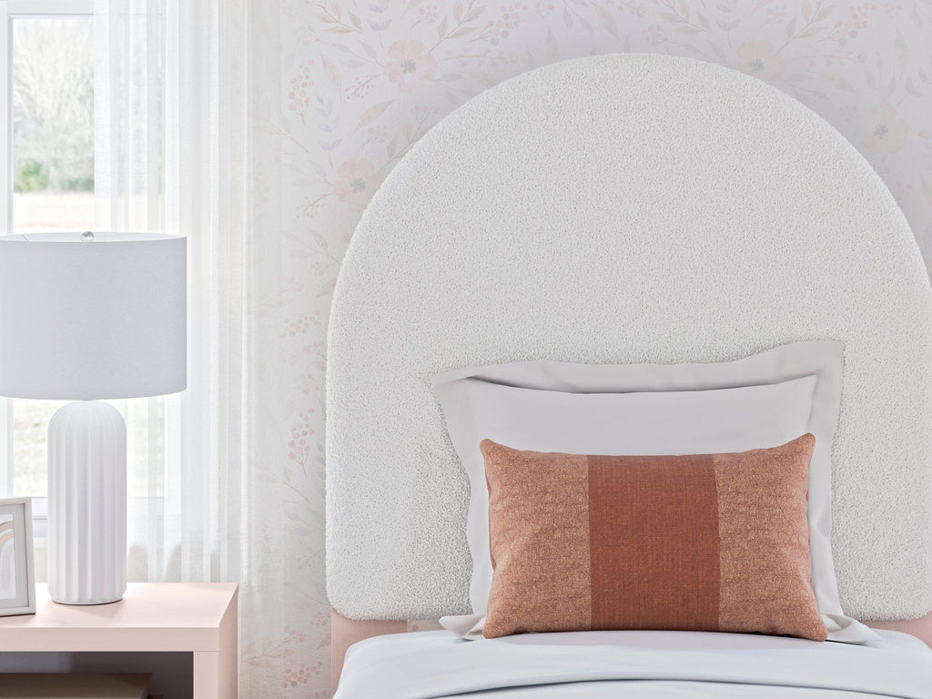 Pretty in pink. This twin upholstered panel bed keeps the spirit of your home’s modern aesthetic while suiting all your young one’s needs. Its cozy-cute upholstery and subtle blush finish bring a playful, charming vibe to bedtime. Made for her and styled for you, it’s a lovely addition to a beautifully chic child’s bedroom.